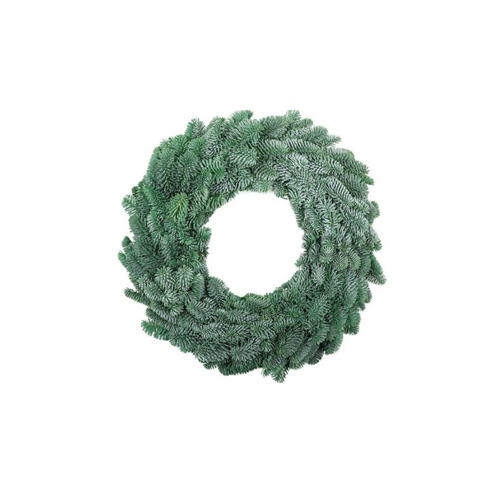 Věnec z živé neopadavé Jedle Nobilis . Vázáno na slámový korpus o průměu 25cm, finální věnec cca 27-30cm. Vhodný pro adventní věnce a vánoční věnce na dveře. Nezdobený. Skladem od 10.11.2025.