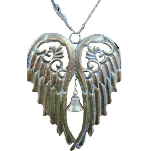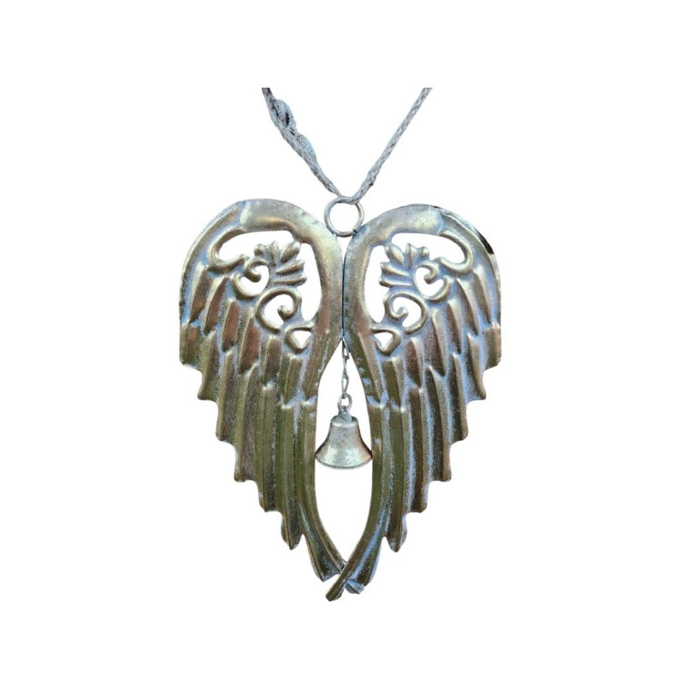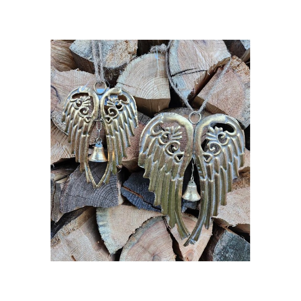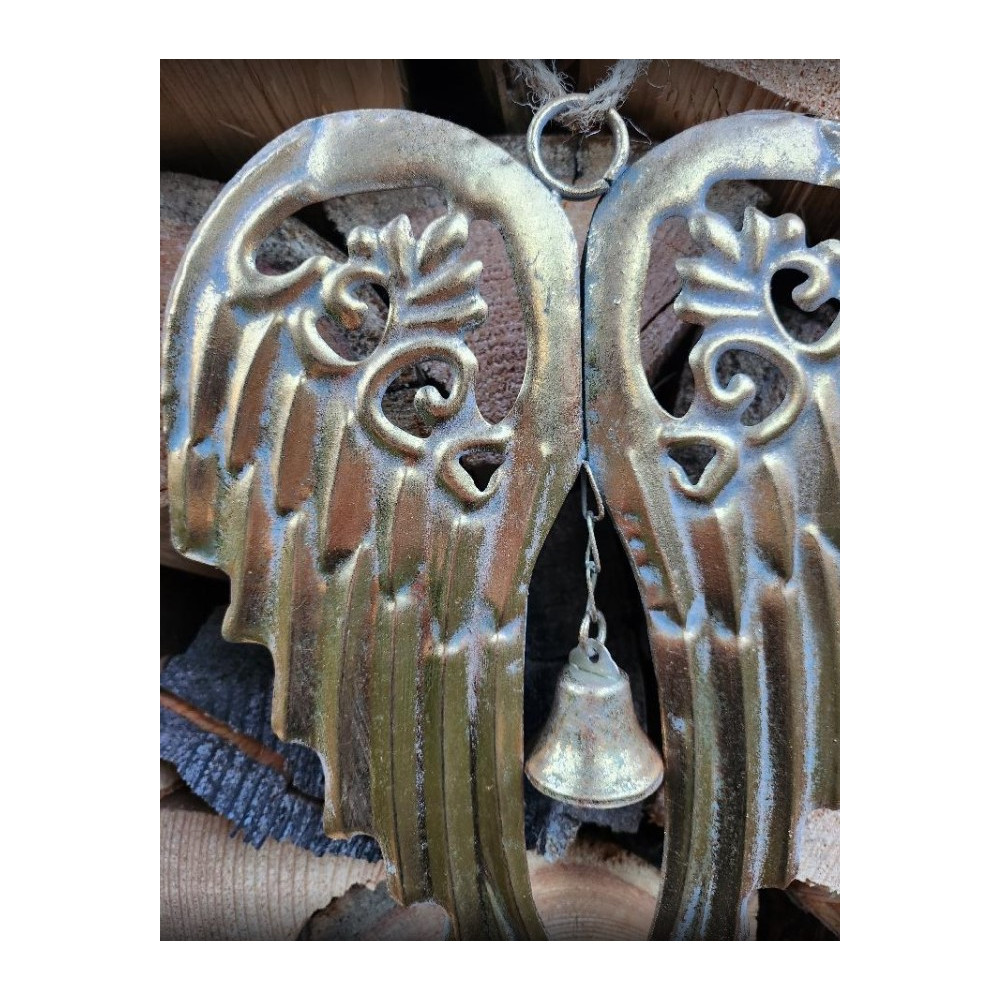 Andělská křídla se zvonečkem k zavěšení. Materiál kov, zlatá patina.