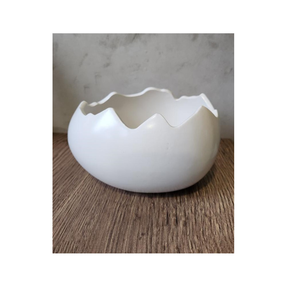Bílá keramická skořápka o rozměrech 17x13x10cm, vhodná pro velikonoční dekorace.