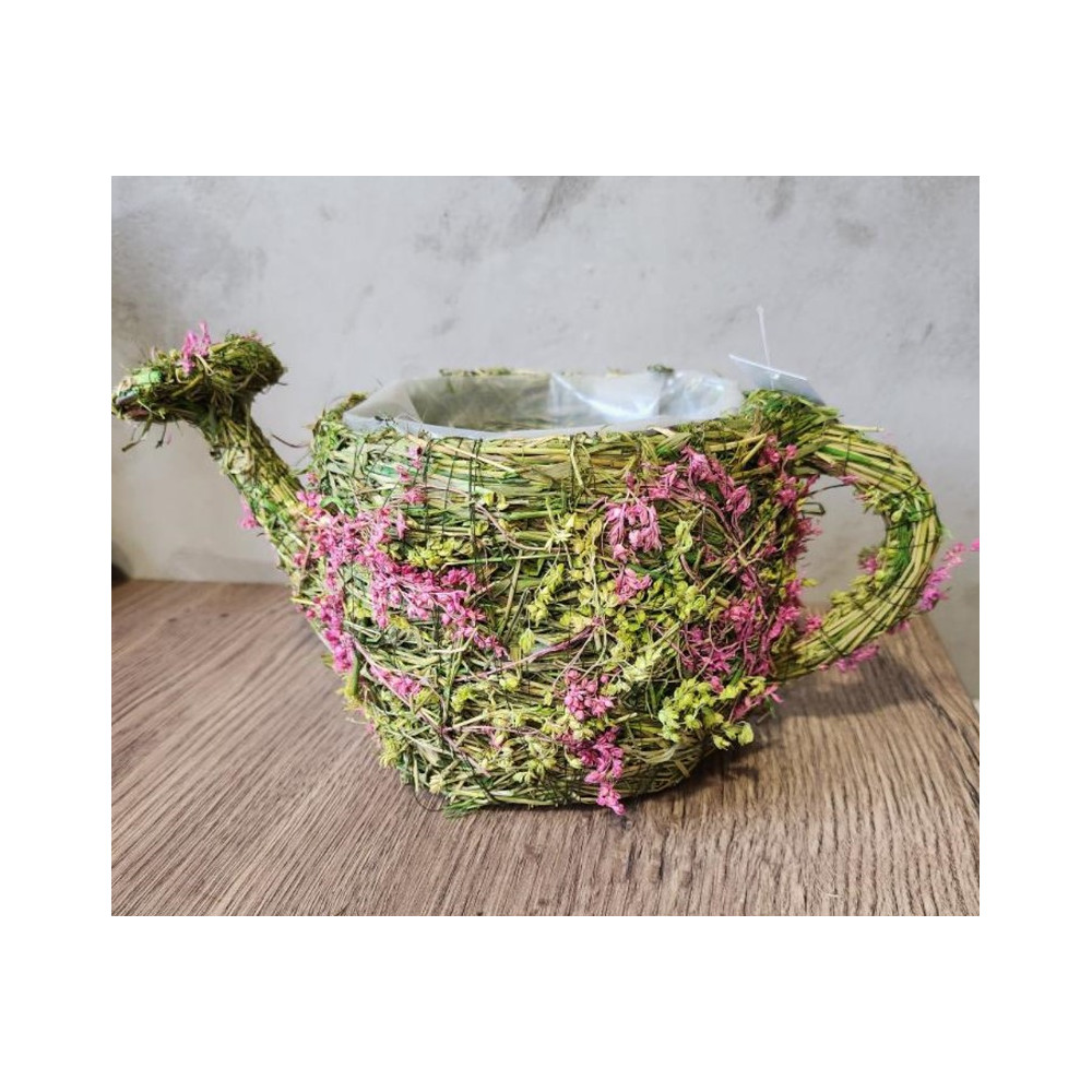 Konvička trávová s květinami o průměru 26cm a výšce 13cm s igelitovou vložkou.
